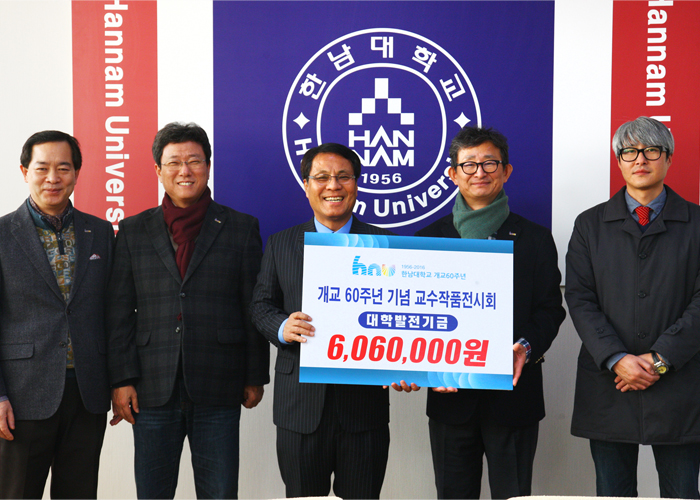 또한 이날 회화과, 미술교육과 교수들은 개교 60주년 교수작품전시회의 수익금 606만원을 대학발전기금으로 기탁했다. 교수작품전은 지난 4월과 10월 두 차례에 걸쳐 진행되었다.