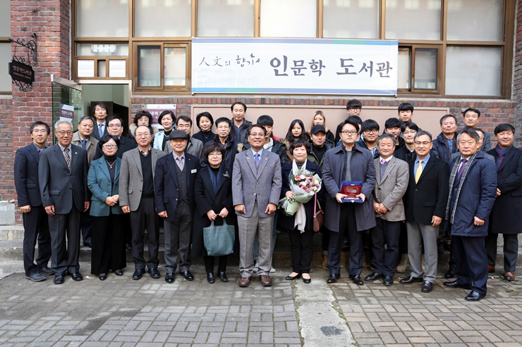7천여 권의 도서를 본교 문과대학 인문학도서관에 기증한 故 김장환 동문(영문과 74년 졸업)의 가족에게 감사패를 증정하는 행사가 13일 열렸다.