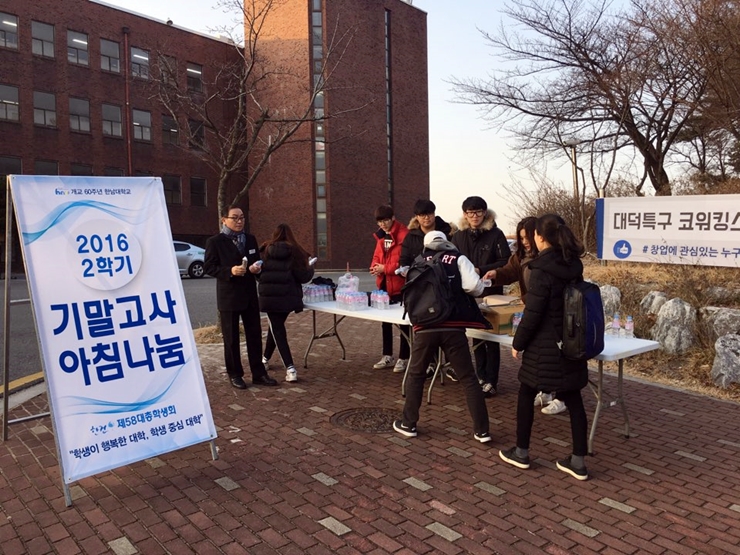 한남대는 매학기 시험기간마다 아침나눔 행사를 하고 있다. 이덕훈 총장은 “학생이 행복한 대학을 만드는 데 우선순위를 두고 대학을 운영하고 있다”고 말했다.