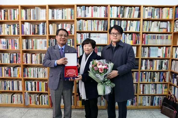 7천여권 도서 기증 故 김장환 동문 가족에게 감사패 증정