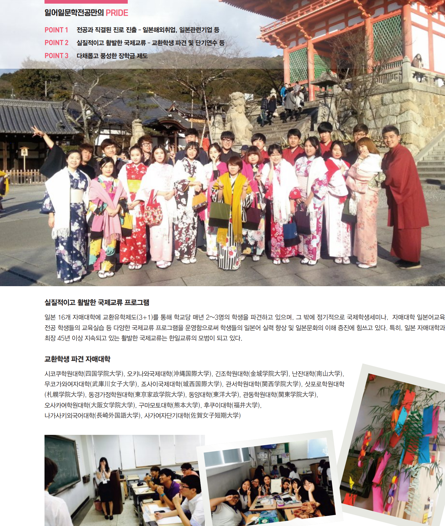 일본어와 일본의 문화, 정치, 경제 등 다방면에 남다른 흥미와 관심이 있는 학생들에게 적합한 학과이다.